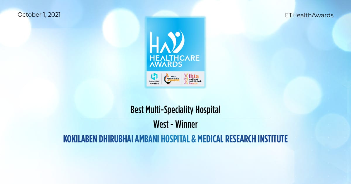 Kokilaben Dhirubhai Ambani Hospital is truly honoured to receive the Best Multispeciality Hospital Western Region Award at ET Health Awards 2021. We dedicate this award to our e doctors, nurses and every member of the team. We thank you all for reposing your trust in us.