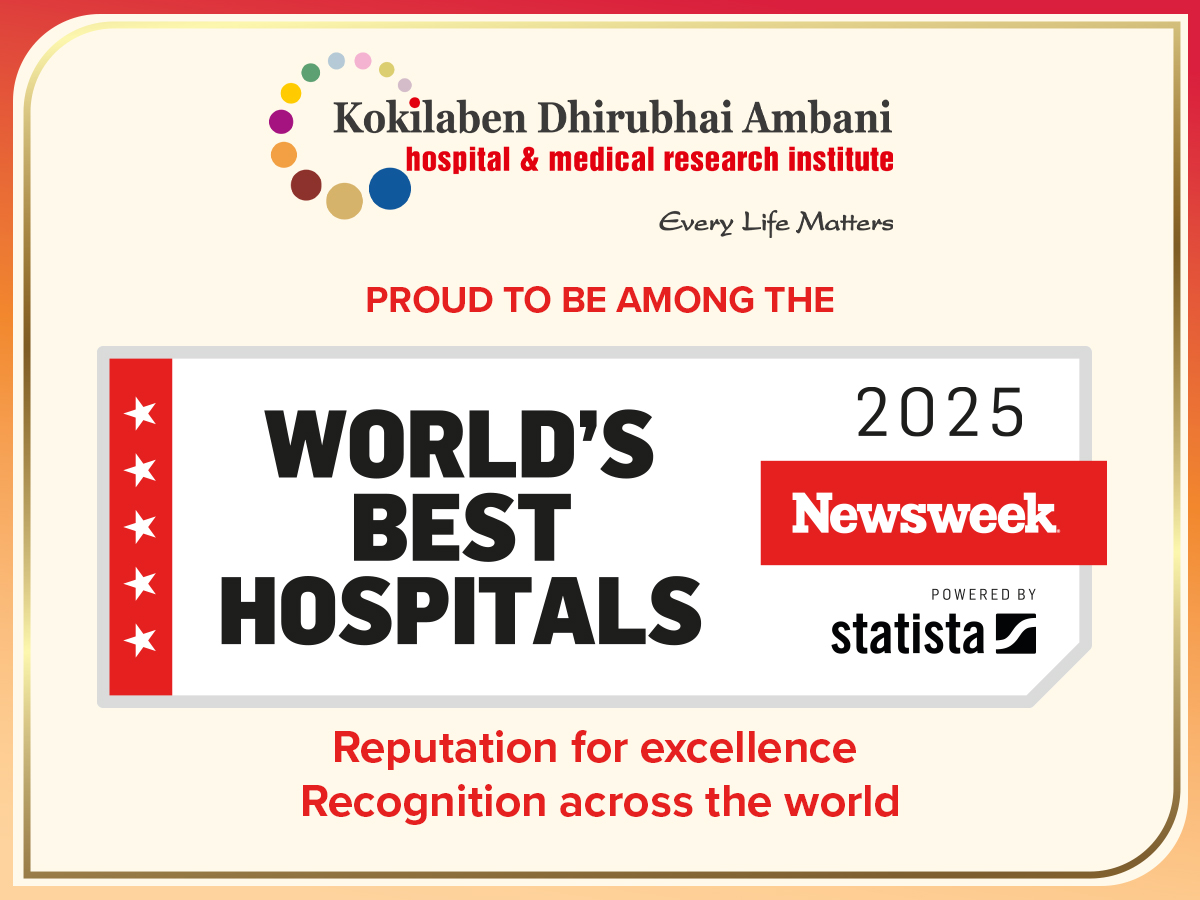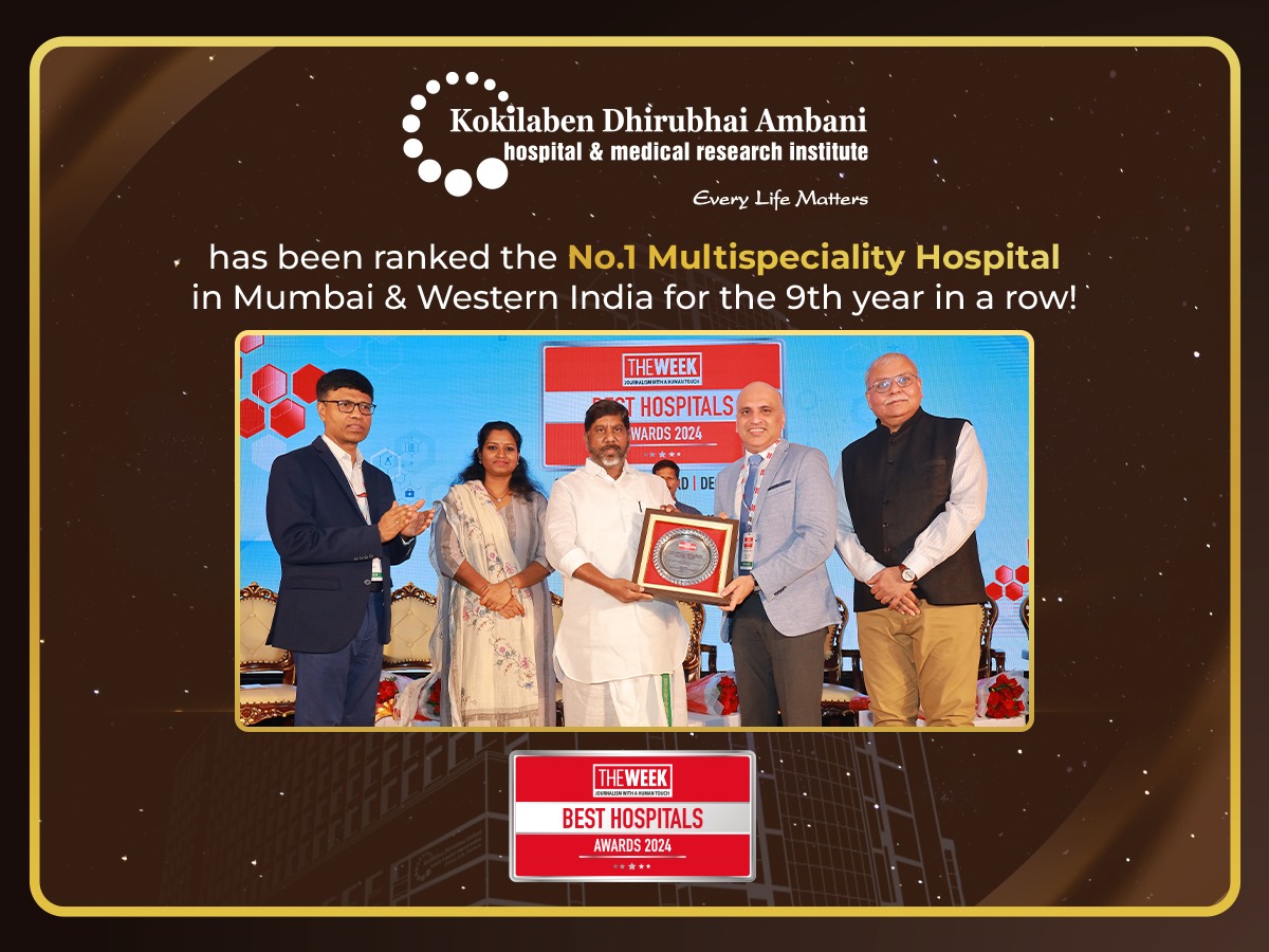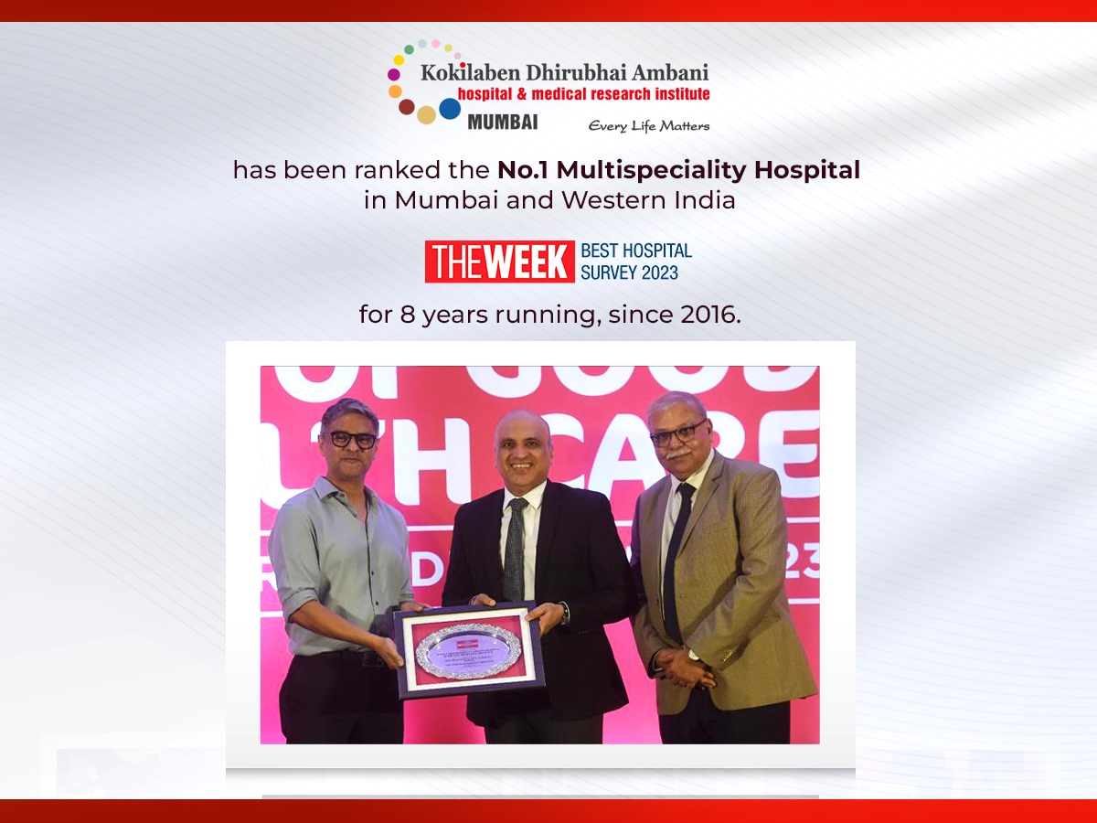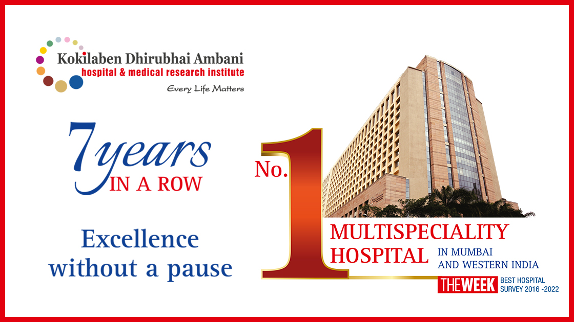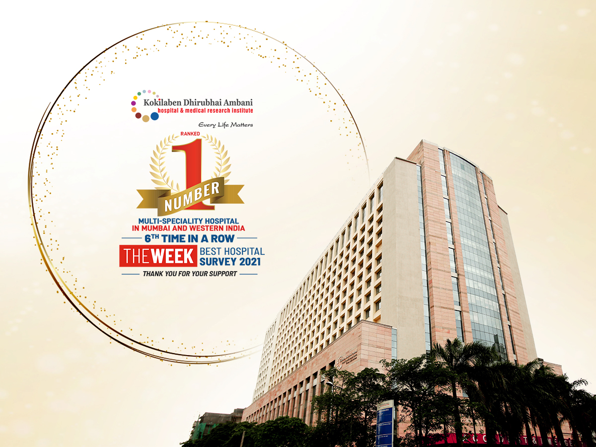 Kokilaben Dhirubhai Ambani Hospital is honored to be ranked the No. 1 Multi-speciality hospital in Mumbai and Western India, for the 6th time in a row, in The Week Best Hospital Survey 2021! We are humbled by your trust in us and promise to strive even harder to deliver world-class healthcare. We thank our entire team of medical professionals and staff for their relentless commitment. Our journey to heal and save lives continues!