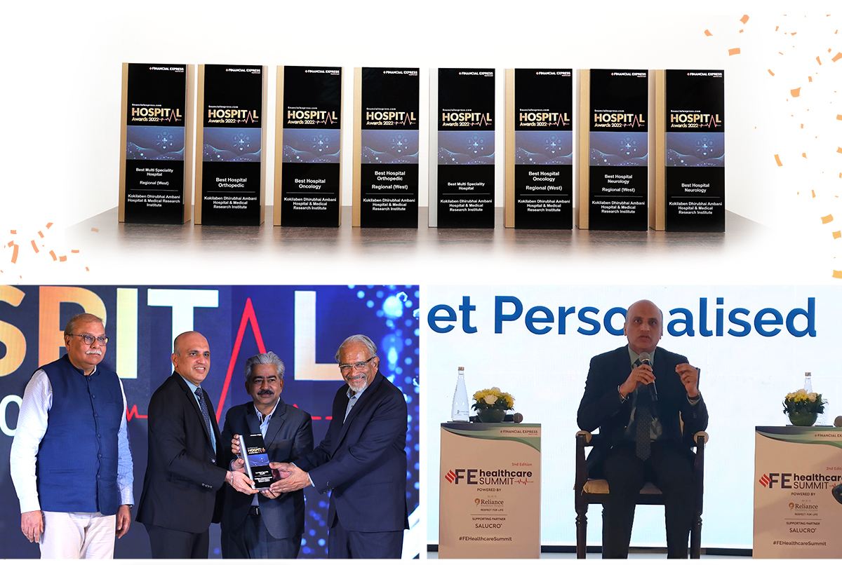 At the FE Best Hospital Awards 2022 held recently in Delhi, Kokilaben Dhirubhai Ambani Hospital, Mumbai took home eight medals (seven gold and a silver) across the National and Western India categories for excellence in multispeciality, oncology, orthopaedics and neurology. Organised by Financial Express, the event was part of a healthcare summit that was graced by a host of dignitaries including Union Health Minister Mansukh Mandaviya and Minister of State for Health and Family Welfare Dr. Bharati Pawar. Dr. Santosh Shetty, CEO & ED, accepted the award on behalf of Team KDAH and also participated in a stimulating panel discussion. We thank the organizers and, most of all, the people we serve for reposing their faith and trust in us as we strive to achieve greater heights!