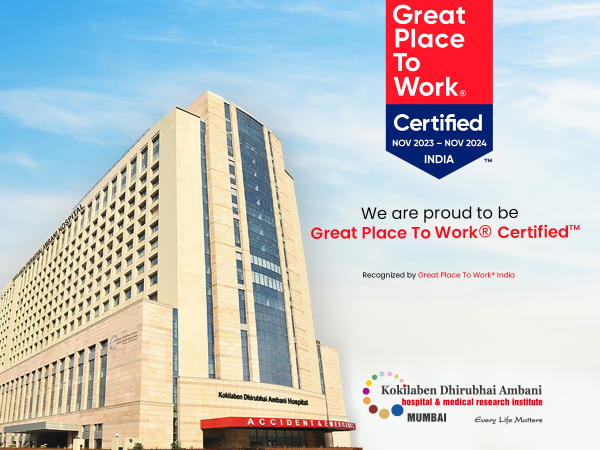 Kokilaben Dhirubhai Ambani Hospital, Mumbai is proud to be a Great Place To Work® Certified™ organization! Our commitment to valuing every team member, fostering a welcoming atmosphere, and ensuring open access to all management levels defines our workplace culture.