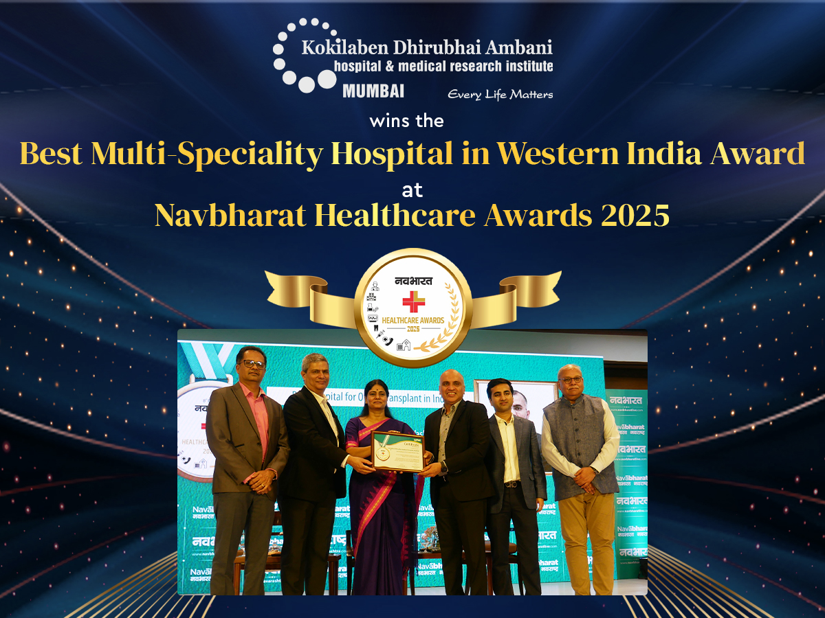 We are delighted to share that Kokilaben Dhirubhai Ambani Hospital, Mumbai, has been awarded Best Multi-Speciality Hospital in Western India at the Navbharat Healthcare Awards 2025!