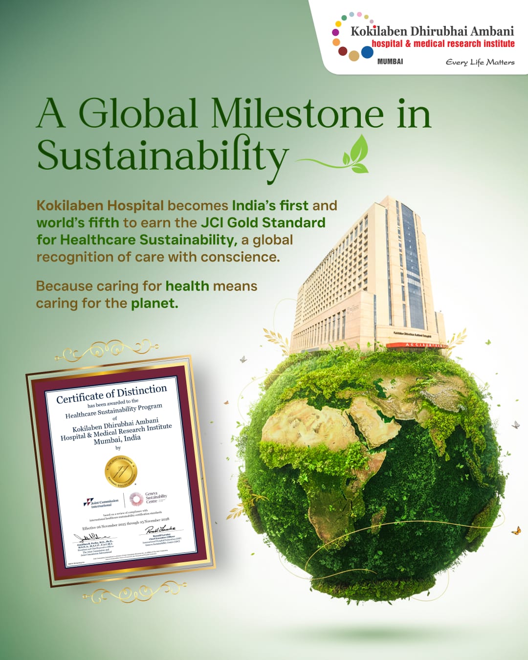 We devote this accomplishment to the highly-skilled team of Kokilaben Hospital who has enabled us to do justice to these parameters and provide the world’s best healthcare, technology and infrastructure to our patients, as we believe our patients deserve nothing but the best!