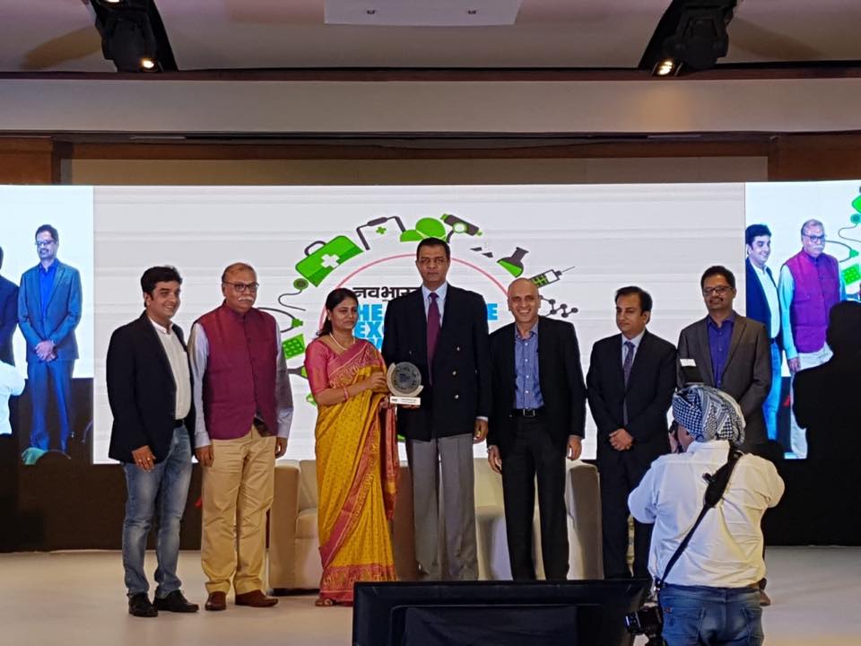 The award was presented to us by Mrs. Anupriya Patel, Minister of State for Health & Family Welfare, Government of India, and Mr. Vaibhav Maheshwari, Director, Navbharat Group.