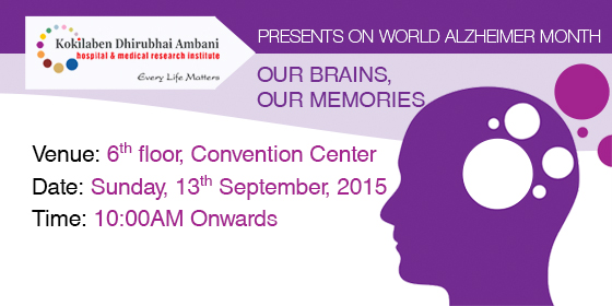 The Alzheimer and Memory Clinic at Kokilaben Hospital has joined hands with centers from around the world to commemorate the World Alzheimer Month, 2015 and invite you to learn about early signs of Alzheimers, how we can prevent it and how we may treat it.
