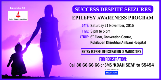 Kokilaben Dhirubhai Ambani Hospital invites you to an Epilepsy Awareness Programme to Meet The Experts. Find out the truths about epilepsy and have your queries answered by a team of epilepsy specialists including doctors, psychologists and social workers.