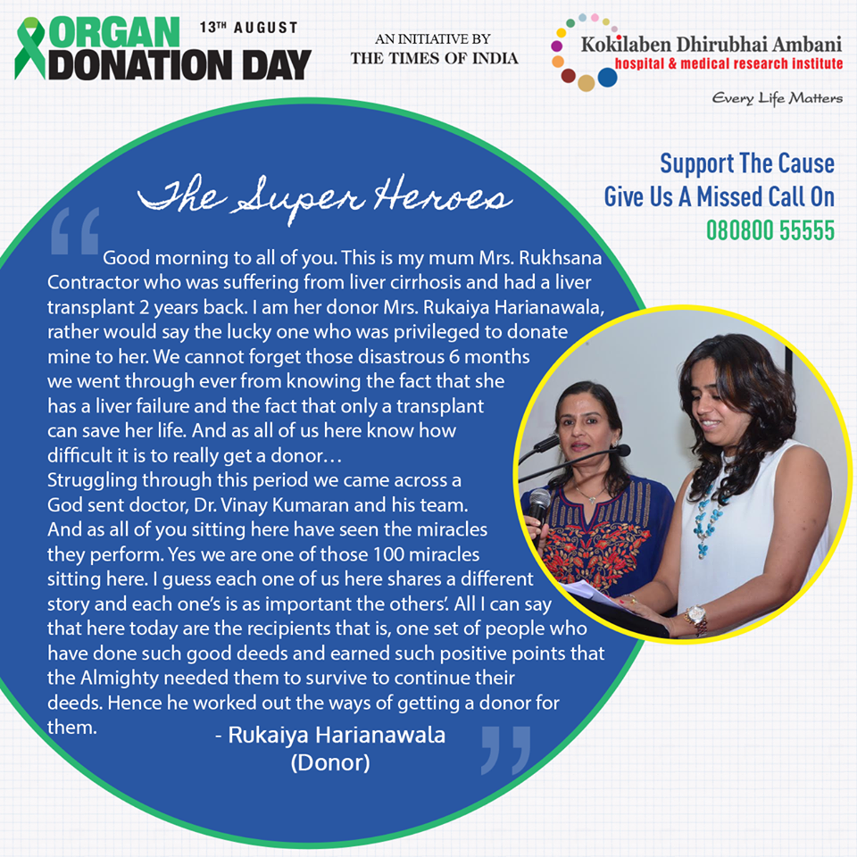 Kokilaben Dhirubhai Ambani Hospital brings to you the real superheroes! Stories about how selfless individuals and their families, come together to help save the lives of not one but upto 8 individuals, by doing one simple task. Register as an Organ Donor at www.organdonationday.in