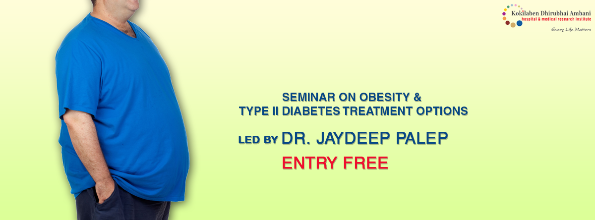 Kokilaben Dhirubhai Ambani Hospital organizes a seminar on Obesity and its treatment options where you will have a chance to ask experts your questions about healthy lifestyle habits. Call now at 022 30696969 to register. The seminar starts today at 2PM, 6th floor, Convention Centre, Kokilaben Hospital