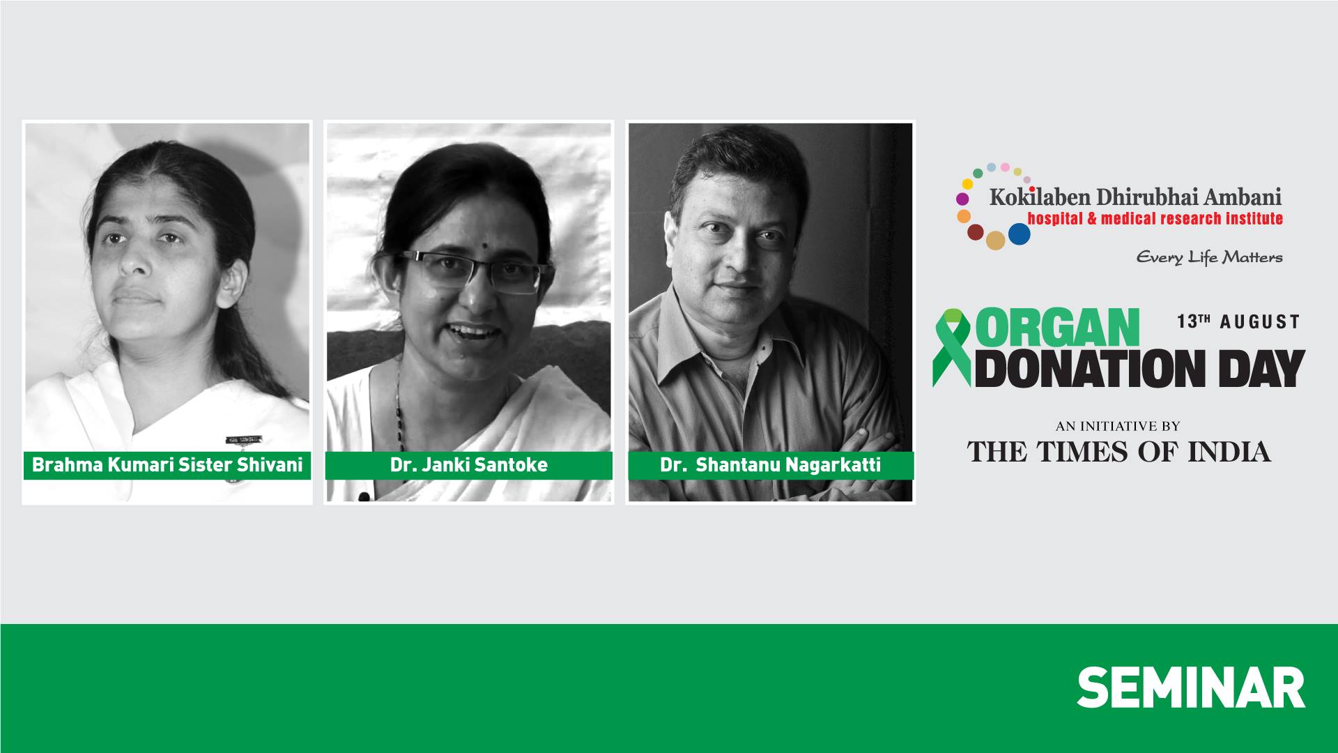 Join us in our seminar on 'Organ Donation- The spiritual and scientific views' with Brahma Kumari Sister Shivani, Dr. Janki Santoke and Dr.Shantanu Nagarkatti, today at 3:30 pm to 6pm.