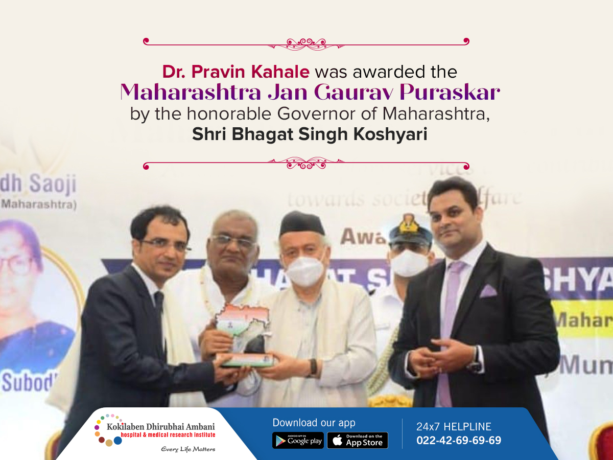 Congratulations to Dr. Pravin Kahale, Consultant, Cardiology at Kokilaben Dhirubhai Ambani Hospital for being awarded the Maharashtra Jan Gaurav Puraskar by the honorable Governor of Maharashtra, Shri Bhagat Singh Koshyari.