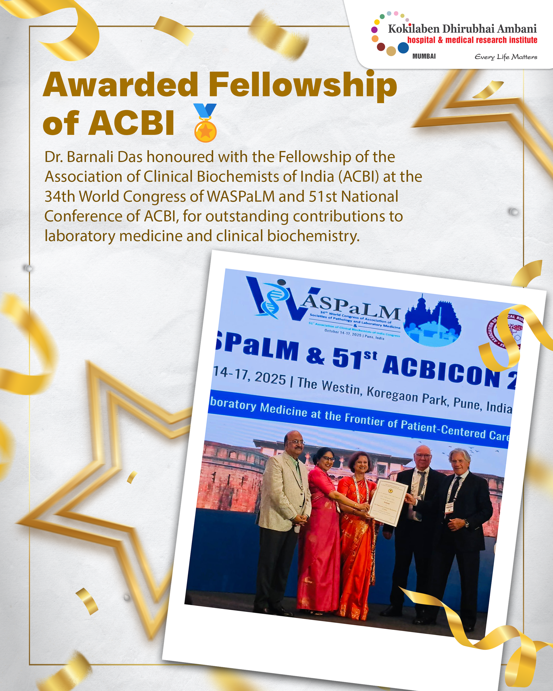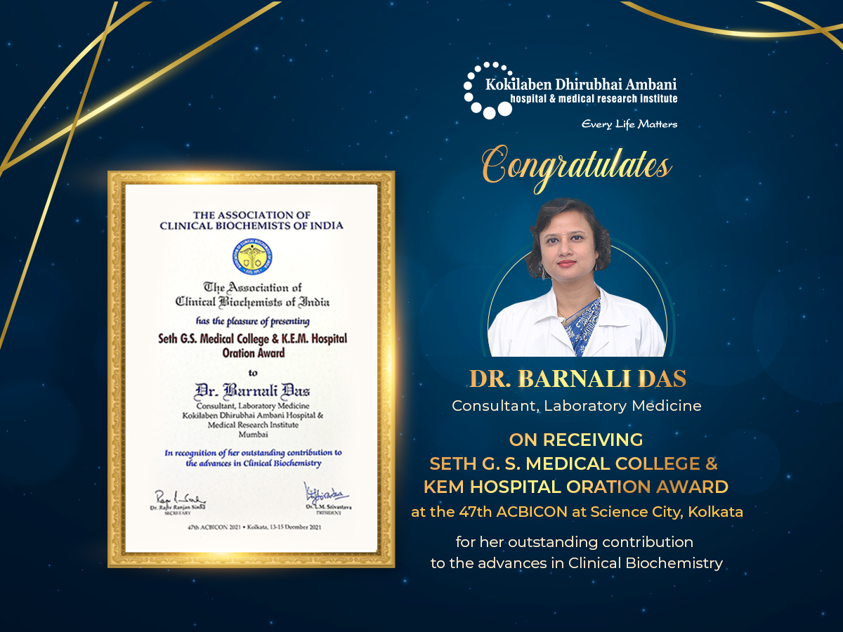 The entire team at Kokilaben Hospital congratulates Dr. Das on her acheivement and we wish her all the best for the future.