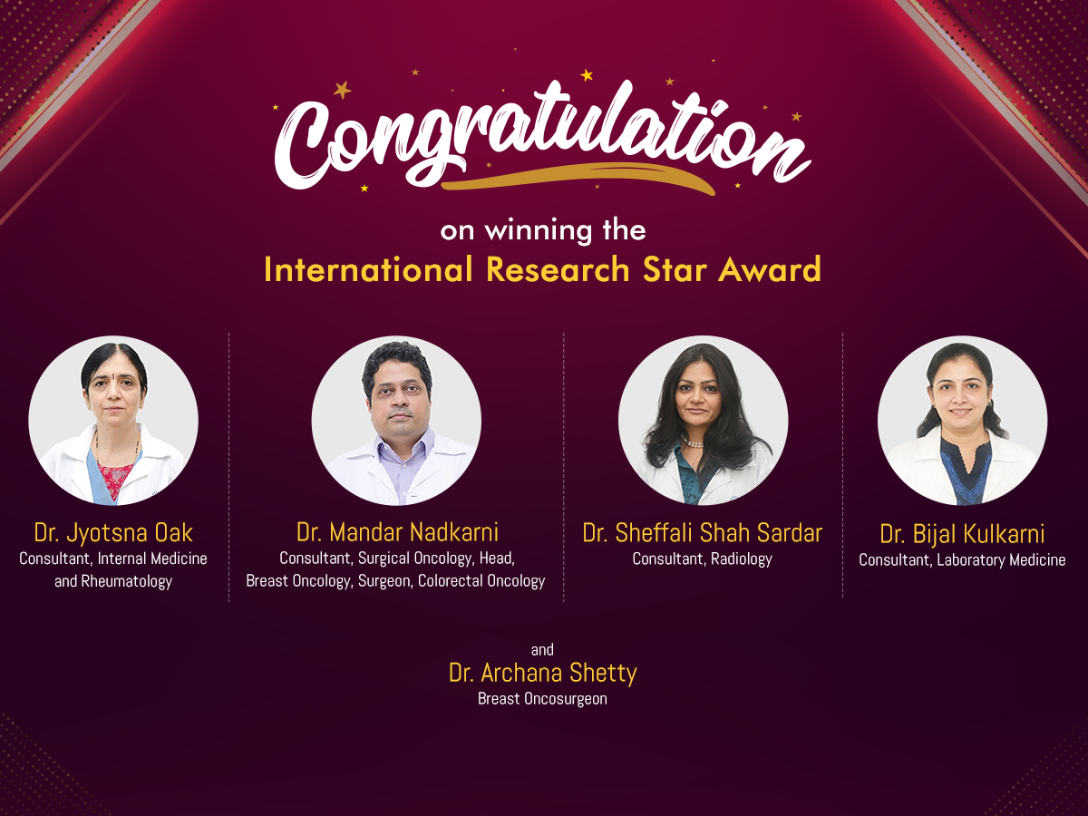 Kokilaben Dhirubhai Ambani Hospital is incredibly proud of the achievement of our team of doctors. We congratulate them for being awarded the "International Research Star Award" by the ISSN International Research Awards (IIRA-2022) in association with the World Research Council in Tiruchirappalli, Tamil Nadu, India for their research on "Methotrexate in the Treatment of Idiopathic Granulomatous Mastitis".