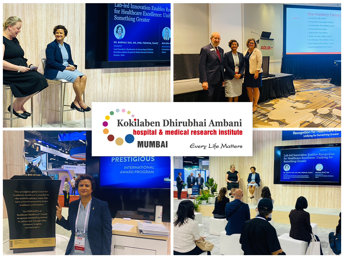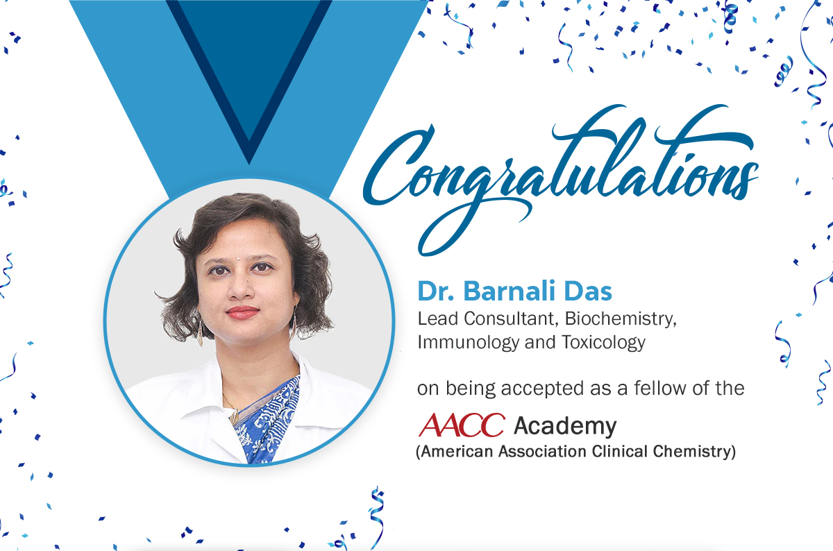 We are delighted to announce that Dr. Barnali Das, Lead Consultant, Biochemistry, Immunology, and Toxicology at Kokilaben Dhirubhai Ambani Hospital has been accepted as a fellow of the AACC Academy and has been invited to the Academy's Annual Awards luncheon and General Membership Meeting in 2023 at the Anaheim Convention Center in Anaheim, California. This prestigious Annual Scientific Meeting brings together more than 50,000 clinical laboratory professionals from 110 countries.