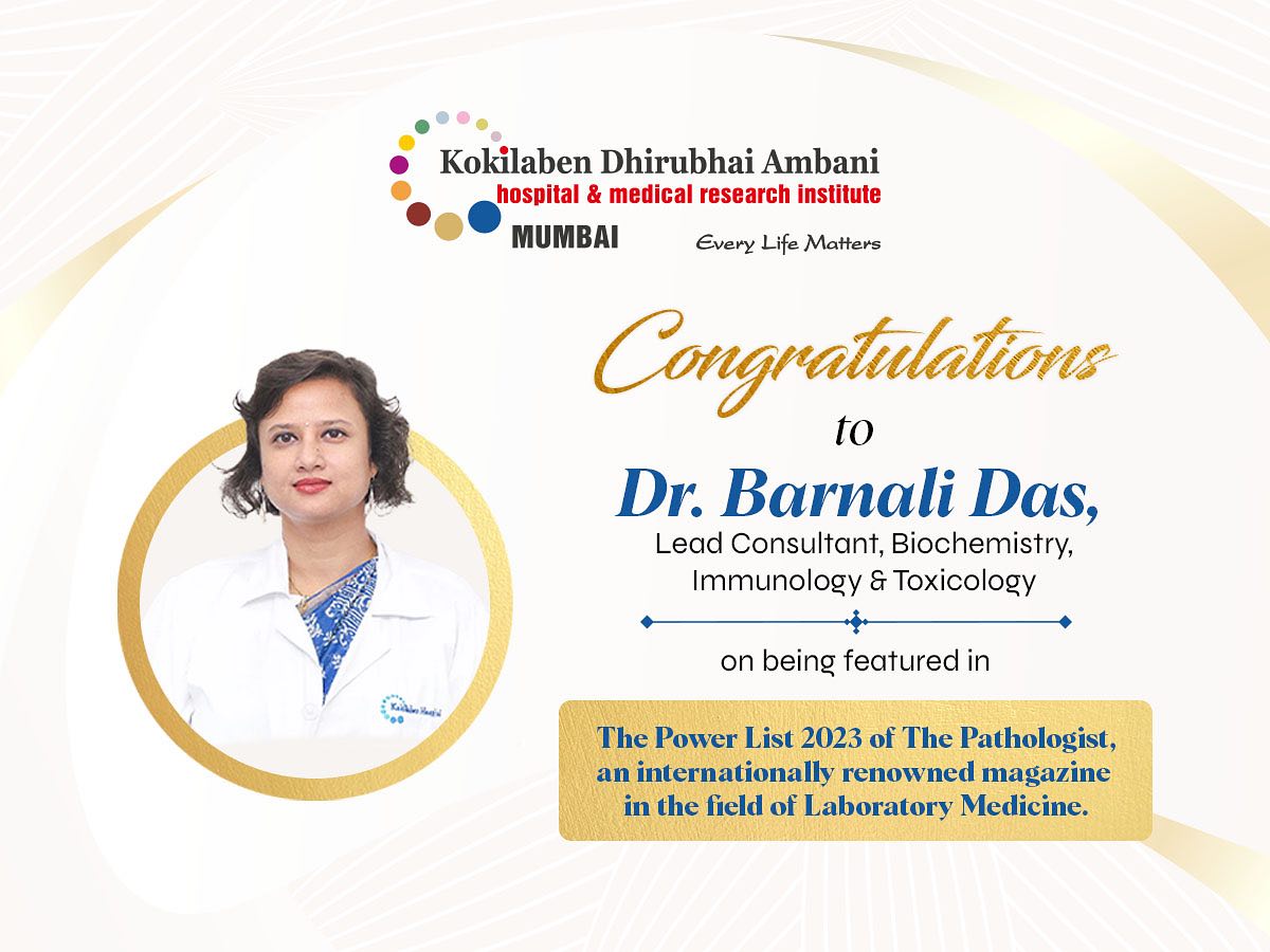 Congratulations to Dr. Barnali Das, Lead Consultant, Biochemistry, Immunology & Toxicology at Kokilaben Dhirubhai Ambani Hospital on being featured in the Power List 2023 of The Pathologist, a renowned international magazine in the field of Laboratory Medicine!